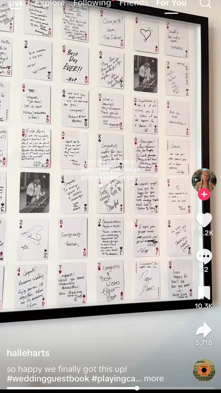 A deck of cards guestbook, where guests sign individual cards with messages you can keep, shuffle, and revisit for years, or even play with.